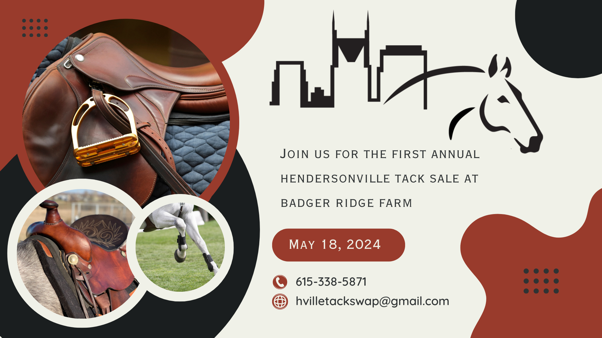 Monthly tack sale held at Badger Ridge Equestrian in Hendersonville, TN on the 1st Thursday of every month from April-November. Sale runs from noon-9pm. Request a booth space or come shop new items each month.